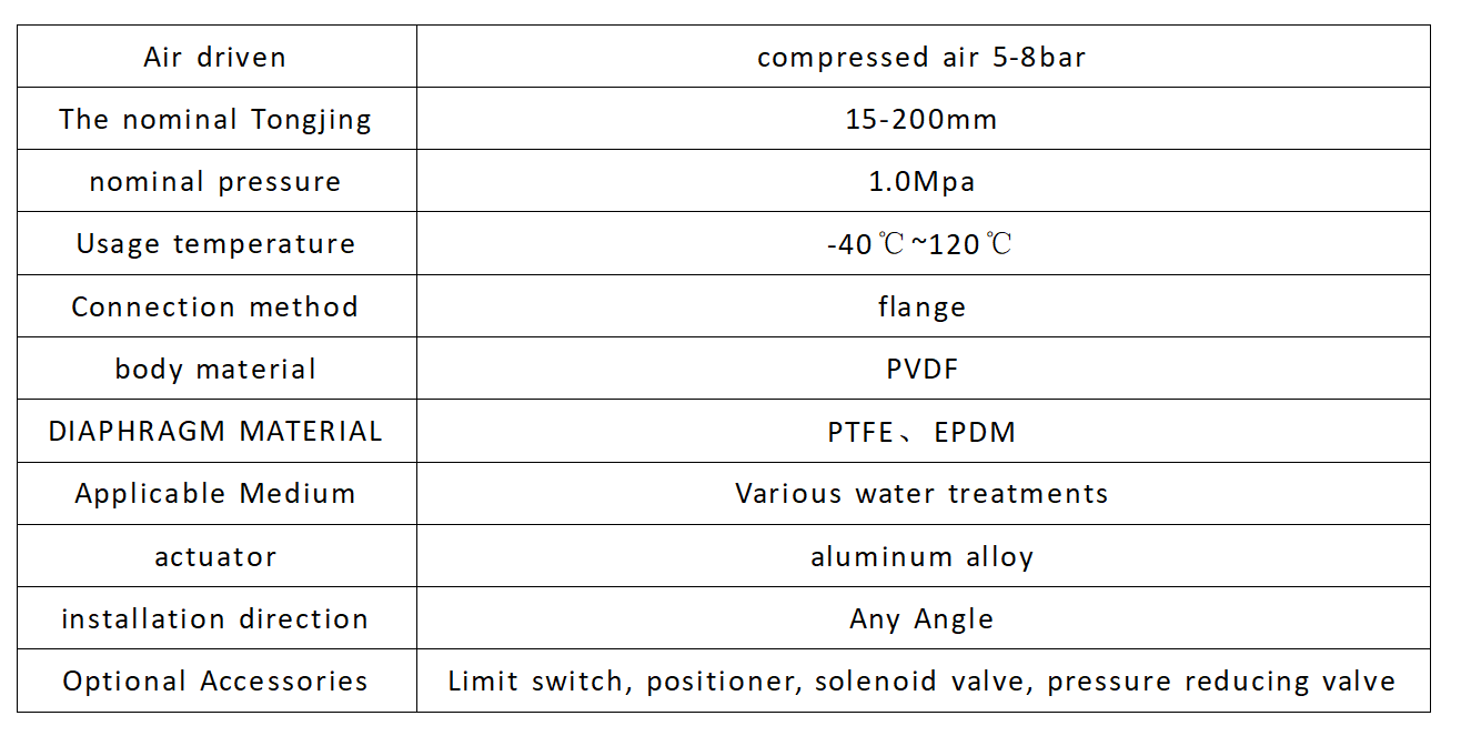 4. The valve body made of polyvinylidene fluoride (PVDF) and the diaphragm made of polytetrafluoroethylene (PTFE) enhance its corrosion resistance and prolong its working life, making it suitable for use in acid-base and corrosive media.