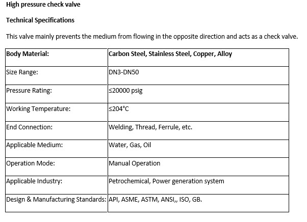 High pressure check valve