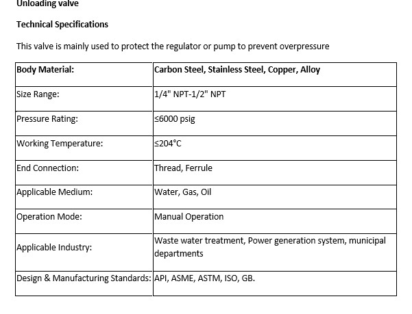 Unloading valve